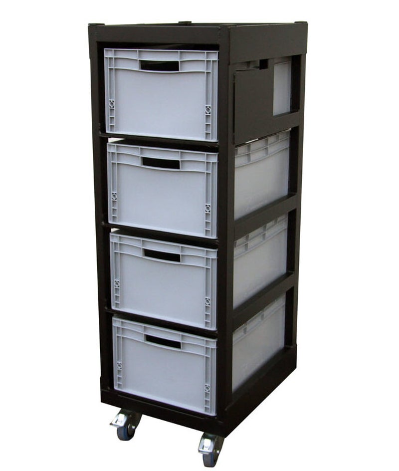Voorzien van 4 of 6 kratten in 2 verschillende afmetingen en 1 grote lade.